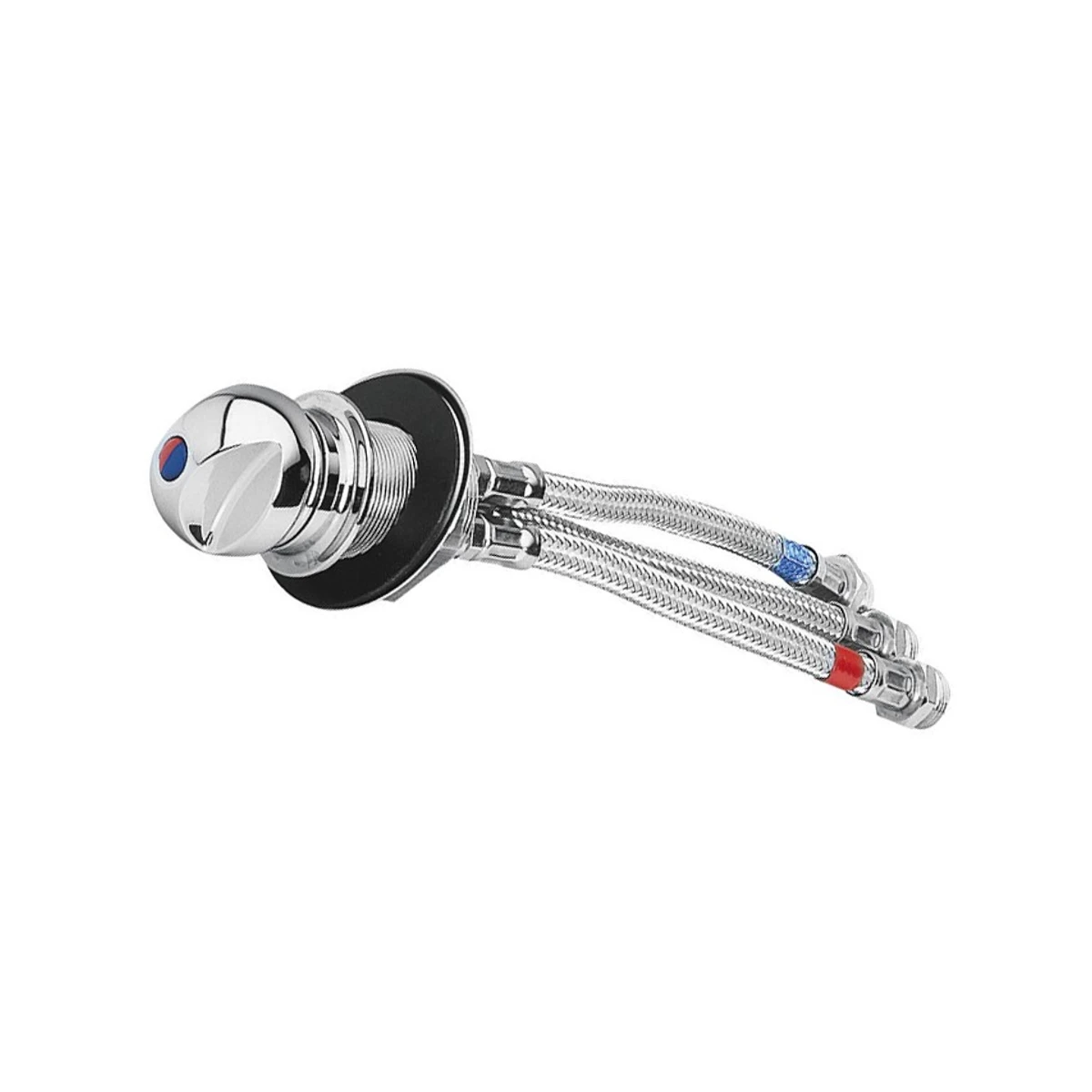 Messing verchromt. Wird mit 20 cm 3-Schlauch- Anschlüssen geliefert.