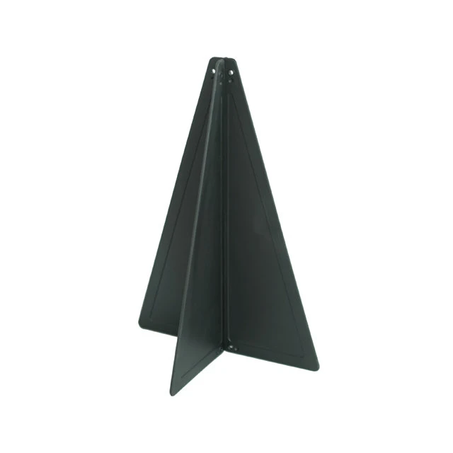 Dieser Signalkegel ist aus schwarzem Kunststoff gefertigt, ist zusammenklappbar und hat eine Größe von 47x35cm.