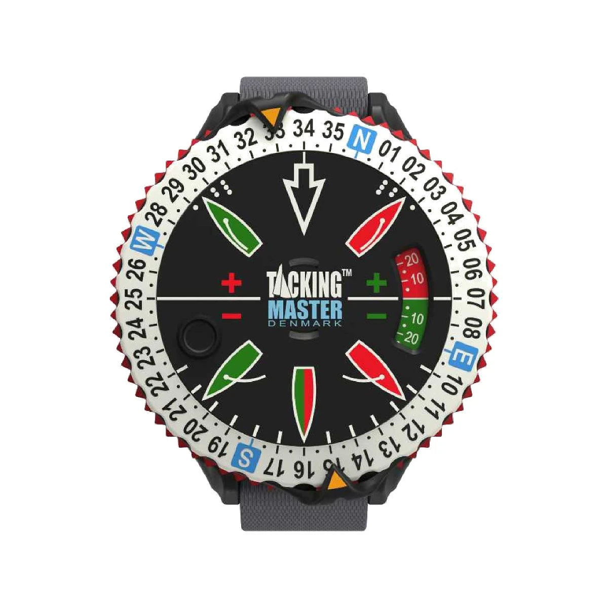 Tacking Master™ ist ein regattatacktisches Strategiewerkzeug. Es wird in Dänemark produziert und ist vollständig analog und wasserfest. Die Hauptwindrichtung wird auf dem weißen Außenkranz eingestellt, die Position der Luvmarke von einem orangen Pfeil markiert. Weicht plötzlich der Kompasskurs von dem auf der Trimmuhr ab, muss die Änderung durch Drehen des Innenkreises angepasst werden. Ein Blick verrät dann, auf welchem Bug die Luvtonne besser anzuliegen ist. Zudem lassen sich mit dem Tacking Master die Wendewinkel an der Kreuz bestimmen oder die bevorzugte Seite der Startlinie feststellen. Ein schönes Spielzeug für Regattasegler, die sich nicht mit leeren Batterien herumschlagen wollen oder einfach eine ”unkaputtbare“ Trimmhilfe suchen.