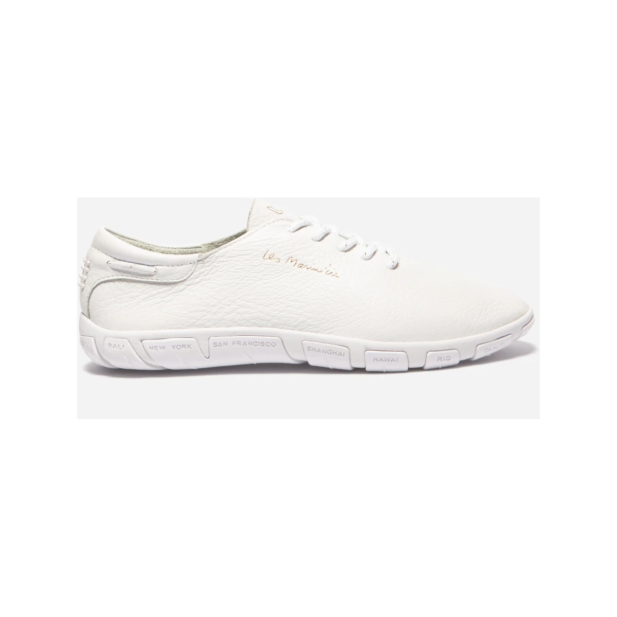 Der TBS Jazaru aus der Serie Les Marinièrs ist ein modischer und komfortabler Bootsschuh für Damen. Er ist ungefüttert, besteht aus Kalbsnarbenleder und hat im vorderen Bereich keine Nähte. Dadurch ist er sehr angenehm zu tragen und schmiegt sich dem Fuß der Trägerin an. Das atmungsaktive Material erlaubt es, dass der TBS Jazaru Bootsschuh auch ohne Socken oder Strümpfe bequem getragen werden kann. Durch das seewasserfeste und schnell trocknende Material ist der Bootsschuh der ideale Begleiter an Deck. Die flexible Gummisohle hat ein rutschfestes Profil und bietet dadurch den nötigen Halt auch bei nassen oder welligen Verhältnissen. Die Innensohle des TBS Jazaru ist herausnehmbar. Für ein modisches Highlight sorgt das Sohlendesign mit prominenten Urlaubszielen. Der sportliche Bootsschuh lässt sich mit einem sauberen Baumwolltuch reinigen und sollte regelmäßig eine Pflegecreme für Leder auftragen bekommen.