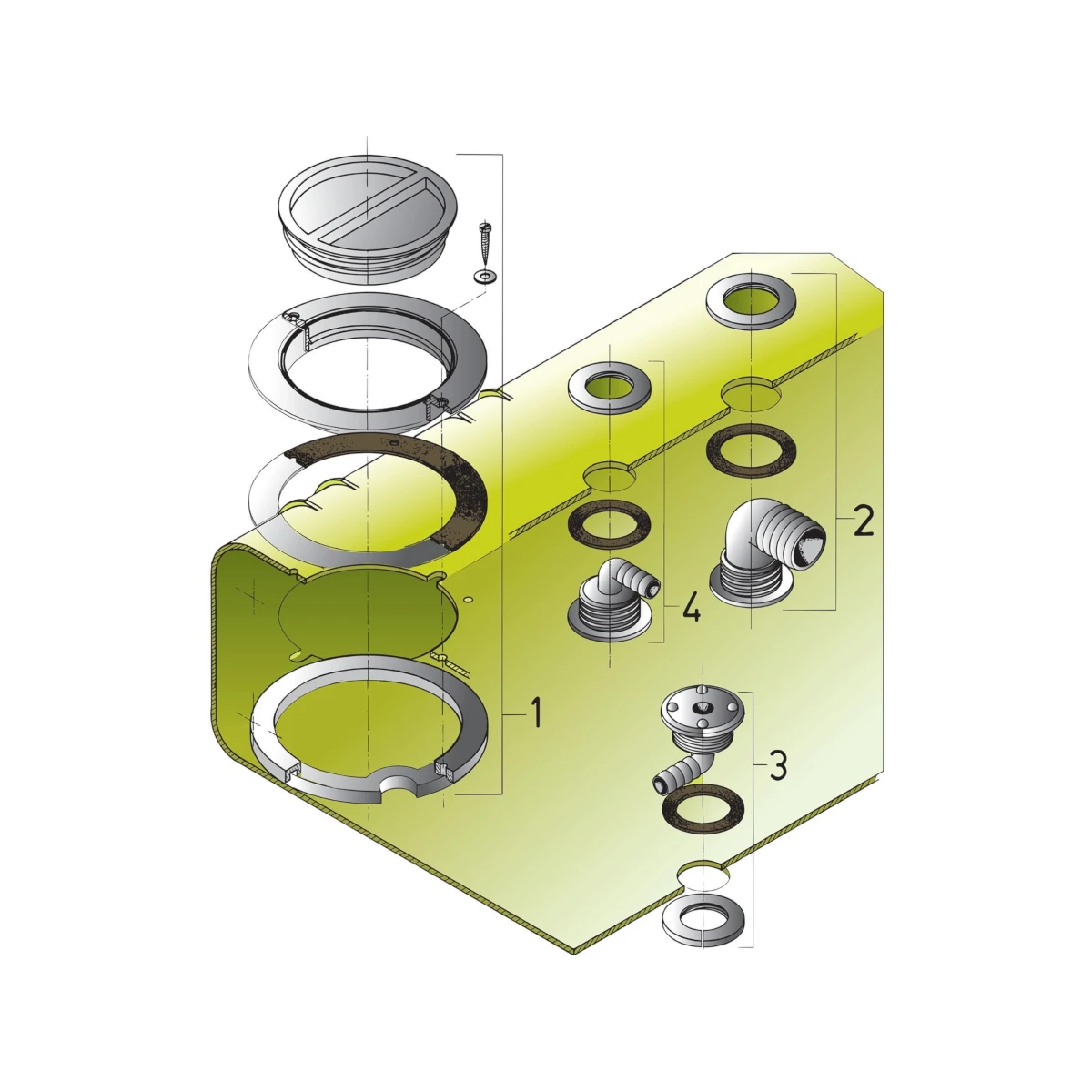 Mit Inspektionsdeckel und gewinkelten Schlauchanschlüssen