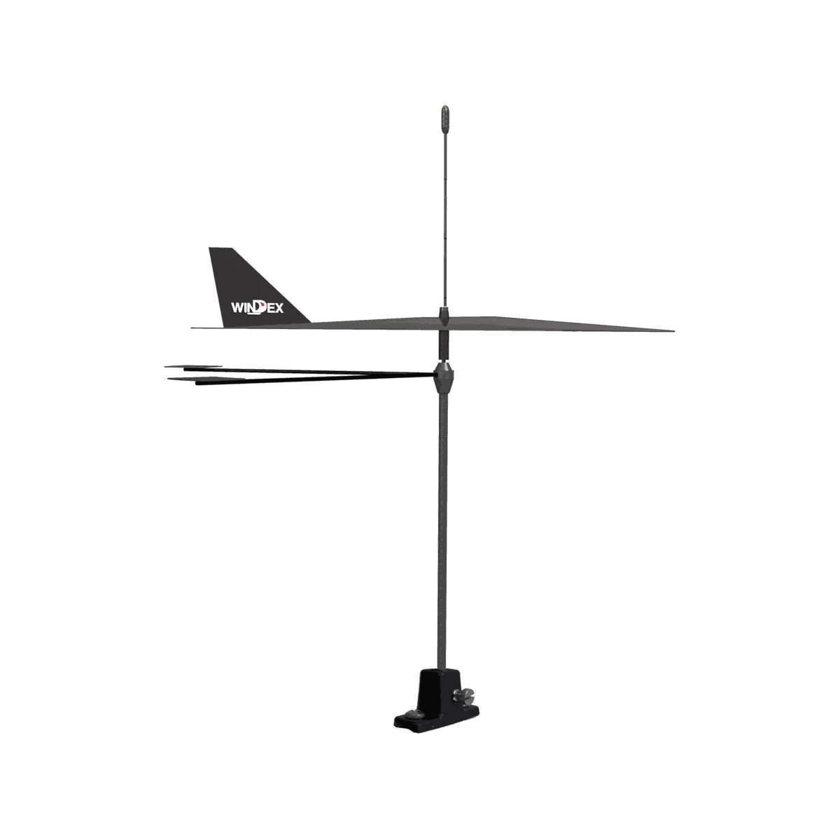 Eine vogelsichere Spitze verlängert den Windex um weitere 190 mm (7,5”) über der Windfahne, um Vögel davon abzuhalten, sich darauf niederzulassen.